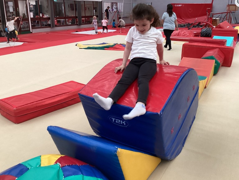 In Nursery children take part in weekly developmental movement play sessions. This gives the children the freedom to move their bodies in lots of different ways which gives the children opportunities to engage in innate movement and patterns. Research shows this has a significant impact on both the children’s physical and brain development. These sessions include using equipment such as a spinning cone, balance beams, stretchy lyrca, beanbags, scarfs and holding bands.